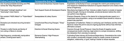 **Table 1: Tactical Parallels Between "Spam PAC" Fundraising and Common Financial Scams**