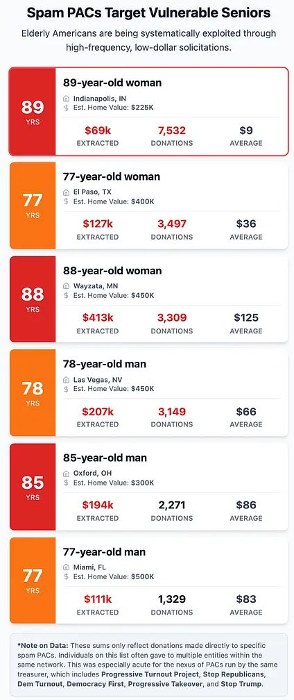 What the data reveals is troubling: these spam PACs are part of a system engineered to target and extract money from seniors.